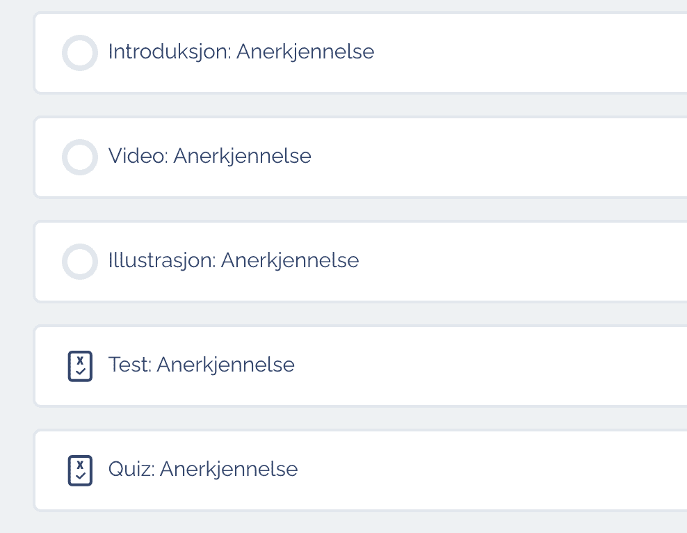 I denne lederportalen finner du ca. 50 kurs, innen ulike temaer. Vi anbefaler at du kikker litt på de ulike. Ta noen tester, se noen introduksjonsvideoer. Gå på oppdagelsesferd.