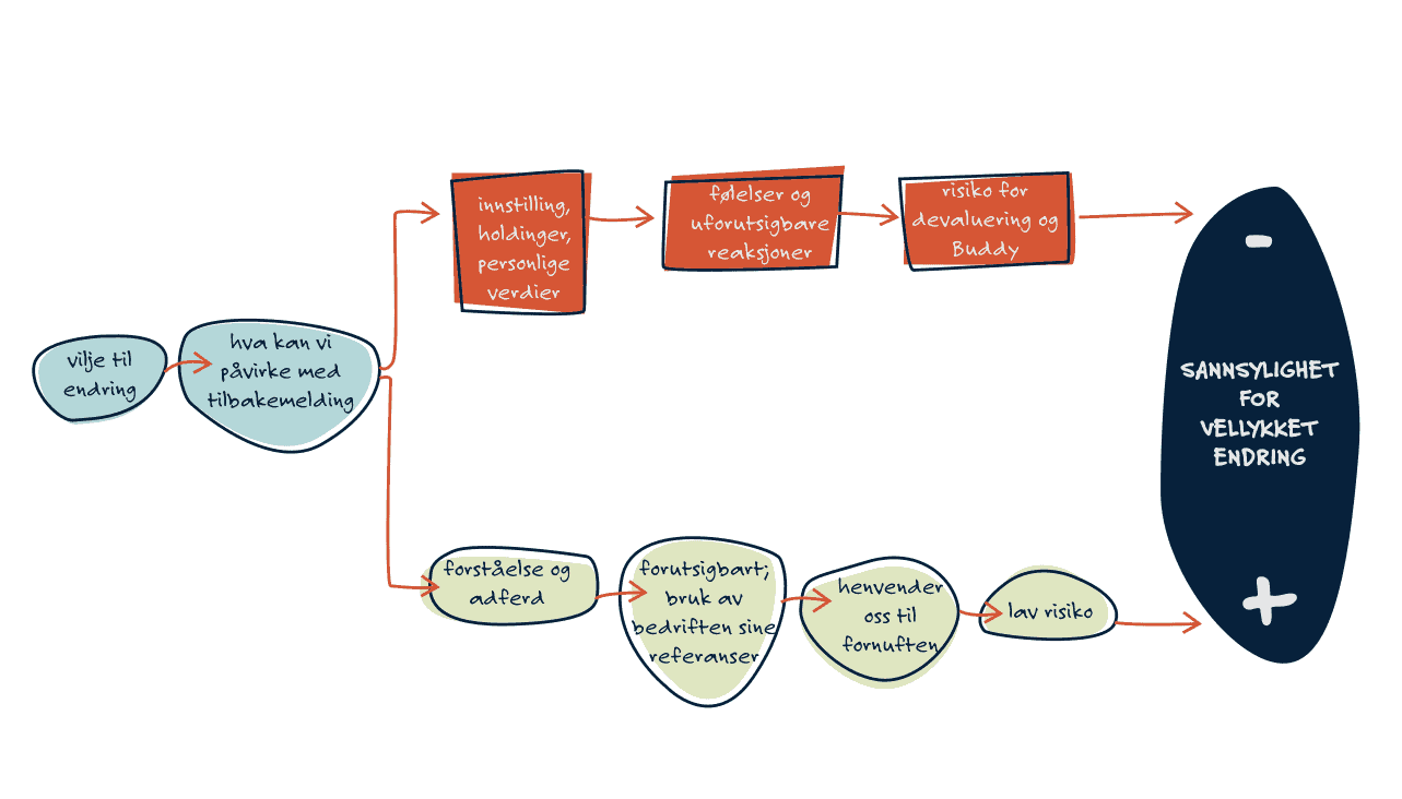 Med mellomrom trenger de fleste gode og presise tilbakemeldinger for å stimulere egen utvikling. Når vi gir tilbakemeldinger så bygger disse direkte eller indirekte på evalueringer vi har gjort oss. Derfor er det grunnleggende viktig at evalueringen dreier seg om vesentlige forhold og at den er åpen. Så er det viktig at vi behersker noen teknikker eller verktøy som gjør tilbakemeldingen tydelig og forståelig slik at den kan påvirke atferden til mottaker i riktig retning